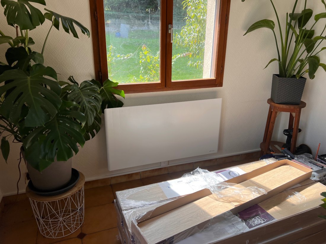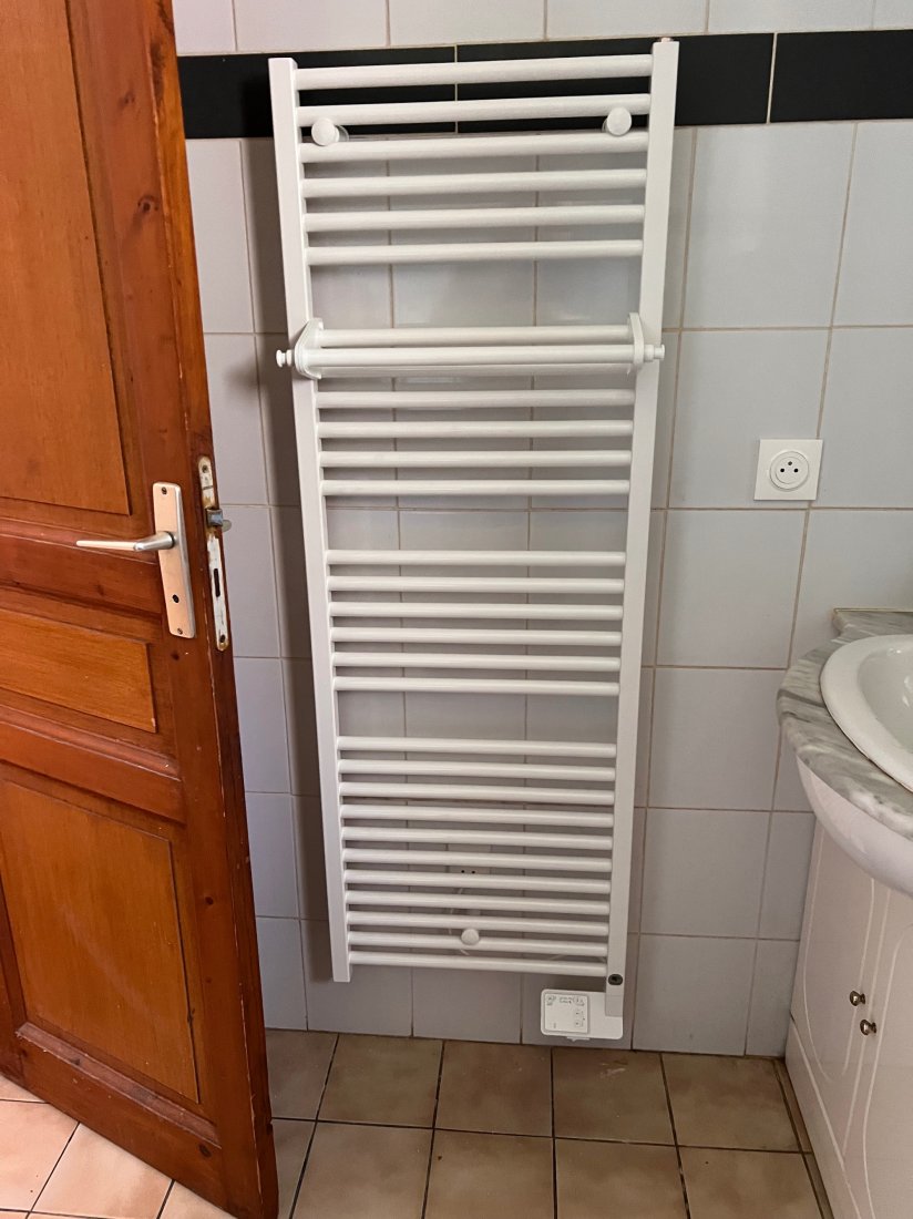 Pour ce projet, l’objectif principal était d’optimiser le confort thermique du logement en modernisant le système de chauffage électrique. Nous avons été sollicités pour déplacer les alimentations électriques existantes des anciens radiateurs et installer de nouveaux modèles à chaleur douce des marques Intuis et Thermor. Ces radiateurs offrent une chaleur homogène, agréable et permettent de réaliser des économies d’énergie tout en s’intégrant harmonieusement à l’intérieur.