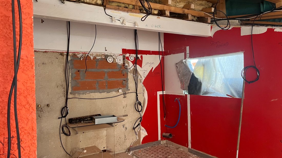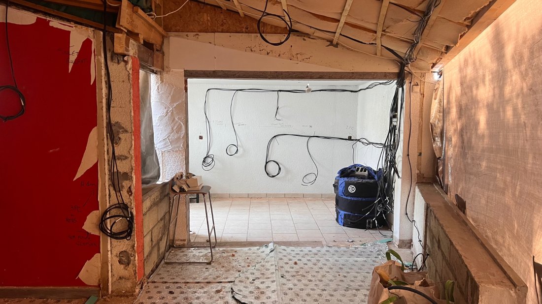 Un électricien installe un nouveau réseau électrique dans un studio en construction, posant câbles, prises et tableau électrique pour garantir sécurité et conformité aux normes.